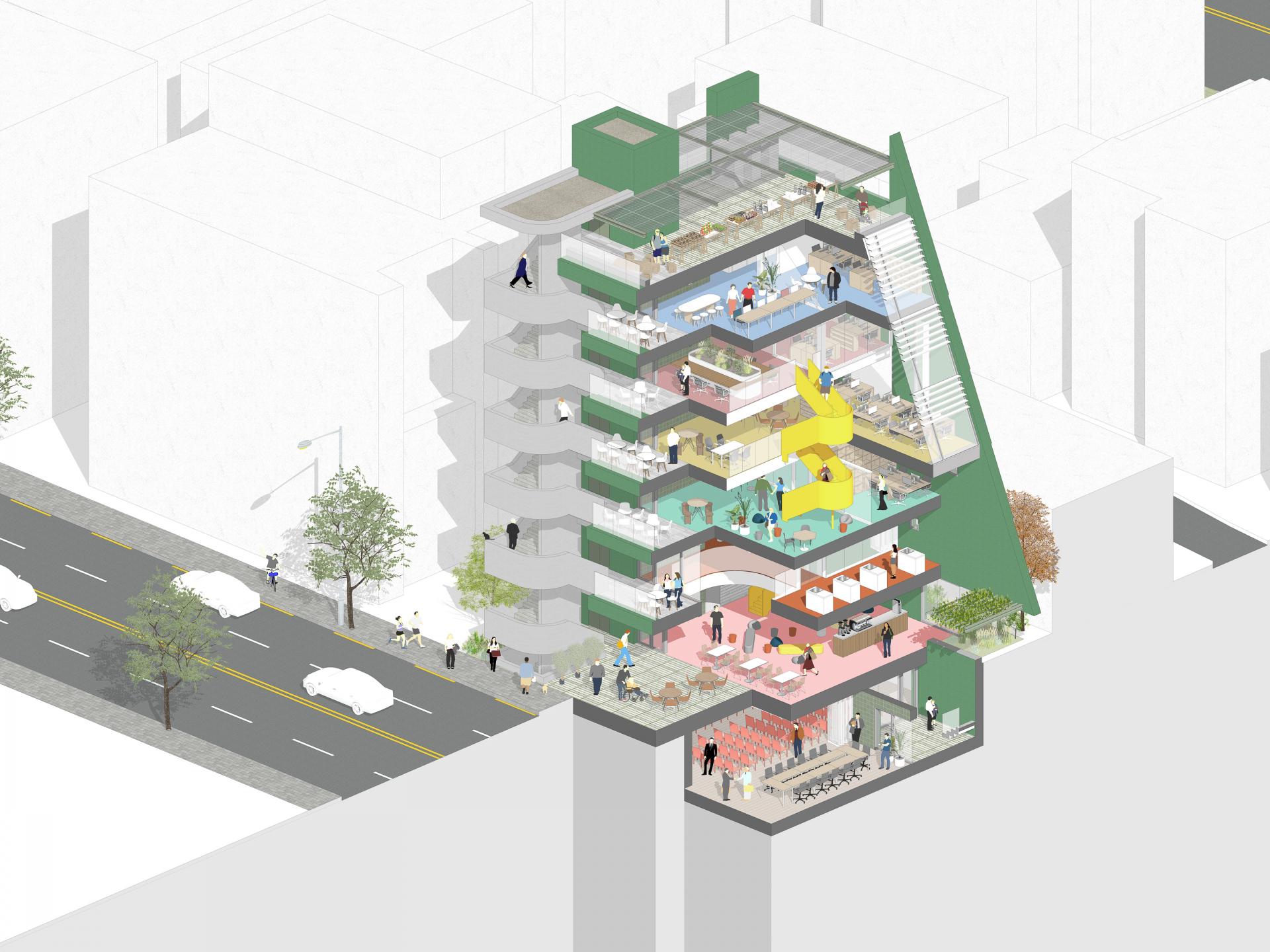 청년창업의 교육 및 지원 등 본연의 기능 뿐 아니라 교류와 네트워킹을 위한 거점으 로 개방적이고 유연한 공간체계를 통해 서로의 일상을 공유하는 장소가 된다.